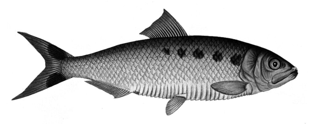 Legenda: Sável, Alosa alosa, por Krüger – Biblioteca Nacional de França. Domínio público. Retirado de  https://commons.wikimedia.org/w/index.php?curid=10375377